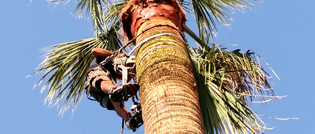 Palmen schneiden, Mallorquinische Stadt Arta, Mallorca, Baum stutzen, Bagger